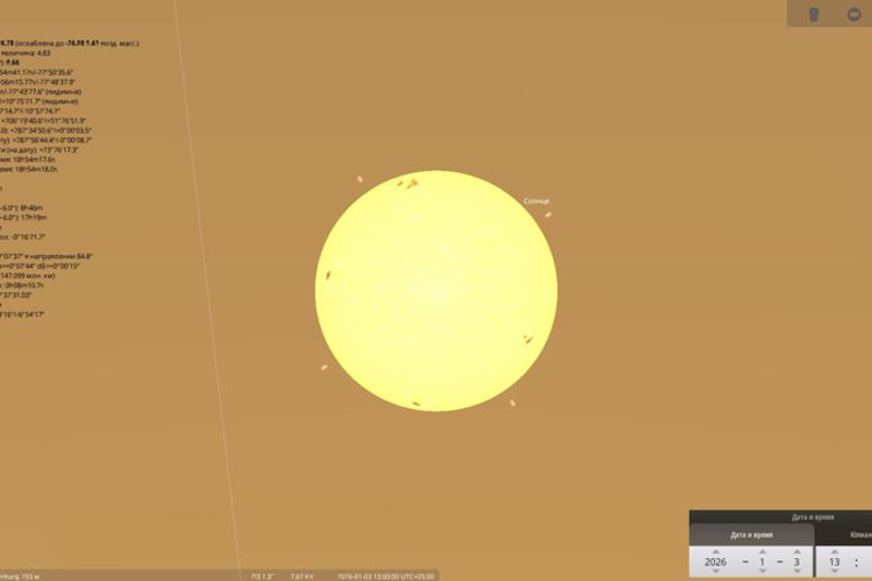 «3 января Земля окажется на расстоянии 147,1 млн км от Солнца. Это минимальное расстояние до Солнца в 2026 году. Среднее расстояние до Солнца составляет 149,5 млн км», - рассказал Владилен Санакоев.