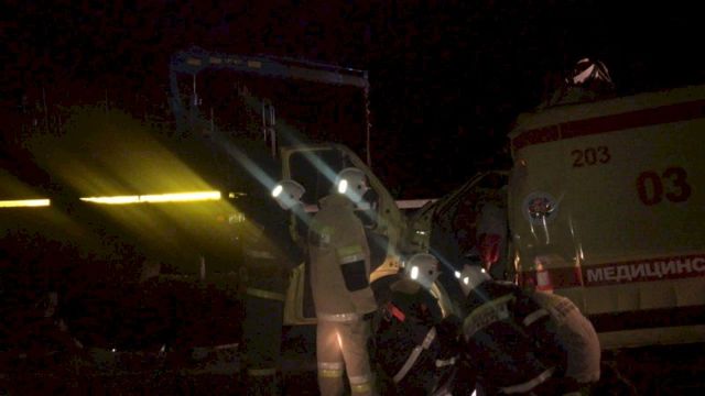 «Водитель скорой помощи совершил наезд на грузовик КамАЗ, который остановился для замены колеса», — сообщили в ГИБДД предварительную версию произошедшего.