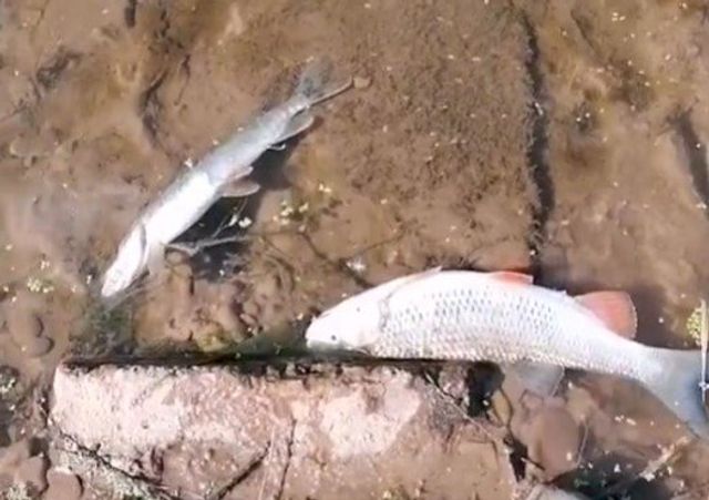 Два видеоролика были опубликованы в субботу, 28 августа, в Тик-ток в аккаунте с именем salyut921. На кадрах — тушки мертвых рыб, мелких, плывущих вниз по течению, и крупных, прибитых к берегу, щучек и голавлей.