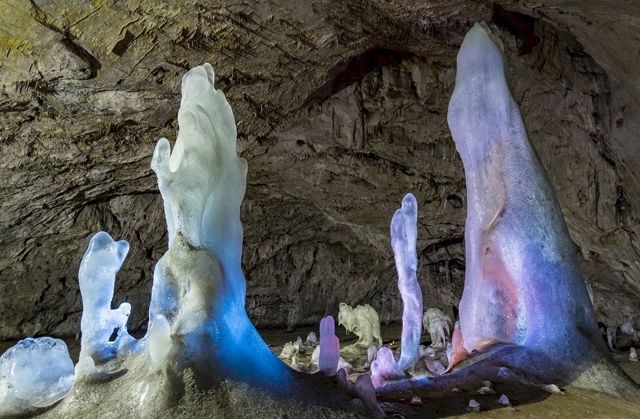 Пещера представляет собой большой зал длиной 104 м, максимальной шириной 61 м высотой 26 м. Пол почти весь занят ледником. Крутой спуск в зал от входа в пещеру покрыт льдом на глубину около 20 м. Внутри находятся гигантские ледяные сталагмиты, достигающие высоты 8-11 м, диаметром в основании до 5 м. Даже в теплое время года температура в пещере ниже 0 градусов.