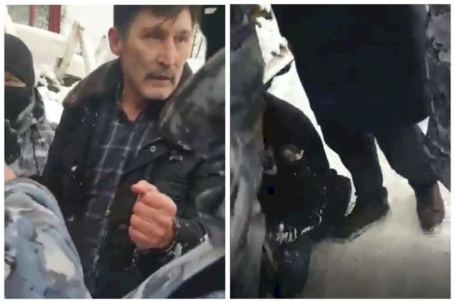 По словам женщины, муж лишь заступился за нее, после этого люди в форме приставов переключились на него. На видео с места событий слышно, как очевидцы просят людей в форме успокоиться. К этому моменту Хуснутдинов уже лежит на снегу. Потом он поднимается, на его левой руке висят наручники.