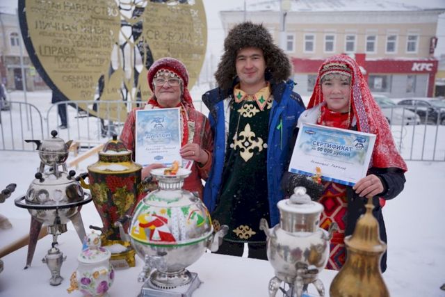 Победителем стал экземпляр из Нефтекамска. Его хозяйка Рамзиля Акмалова привезла на праздник 36 самых разных самоваров из личной коллекции.