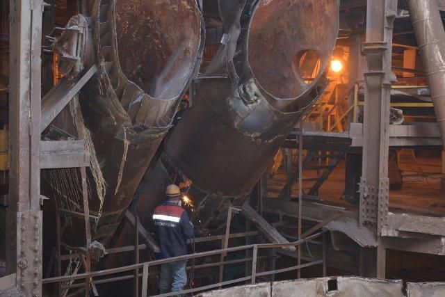 Со сносом старой печи сотрудники предприятия в режиме действующего производства справились за 6 недель. Печь КС-1 – самая старая из пяти печей цеха. Она была введена в эксплуатацию в 1956 году, и с того времени ее лишь ремонтировали, не модернизируя конструкцию. Следующий этап – поставка элементов печи. Новый агрегат завозится на завод частями и собирается непосредственно на месте. Самый важный узел печи – корпус – изготовлен из углеродистой стали толщиной 12 мм. Его футеруют огнеупорным кирпичом (температура обжига составляет 950-980 градусов С) в три слоя толщиной 513 мм, заливают подину (низ печи) жаропрочным бетоном, монтируют элементы испарительного охлаждения, газоходный тракт. Диаметр печи – 7,5 м, высота – около 11 м, а вес – свыше 360 тонн. Основным отличием новой печи КС-1 будет обновленная система испарительного охлаждения и наличие донного выпуска, который позволяет удалять крупную фракцию цинкового огарка (продукт обжига, в дальнейшем идущий на выщелачивание), оседающую в печи. Также за счет уменьшения доли ручного труда существенно улучшатся условия работы обжигальщиков.