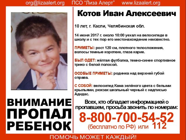 В Каслях Челябинской области без вести пропал десятилетний Иван Котов. На данный момент волонтеры из Екатеринбурга отправились на Южный Урал, чтобы присоединиться к поискам, сообщает «Лиза Алерт».