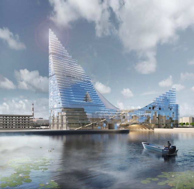 Проект, авторами которого стали специалисты московского проектного института «Арена», победил на специальном архитектурном конкурсе в Челябинске в 2016 году. Уникальная особенность здания — оно будет располагаться сразу на двух берегах реки Миасс. Внутри помимо собственно конгресс-холла должны разместиться офисные площади, гостиница, жилые апартаменты, универсальный концертный зал, музей, рестораны и кафе.