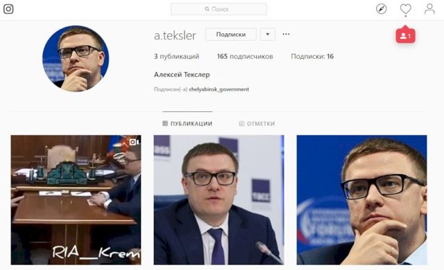 Вчера днем в Instagram было обнаружено сразу два аккаунта под видом странички Алексея Текслера .