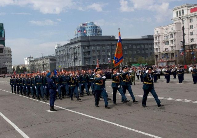 В 12 часов на площади Революции прошел традиционный военный парад. Среди парадных расчетов были роты дислоцированной в Чебаркуле 90-й гвардейской танковой дивизии, 23-го отряда спецназа войск национальной гвардии, 21-й смешанной авиадивизии, гарнизона полиции, сил региональных управлений МЧС и ГУФСИН, кадетских школ, колонна ветеранов боевых действий.