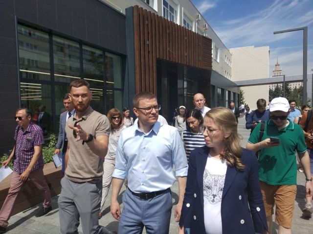 Стало понятно, что ребята здесь не просто так. И точно — после того, как Алексей Текслер пообщался с господином Петросяном и подчеркнул, что «качество должно быть прежде всего» (но сроки от этого не сдвинутся), к главе региона подвели ребят из «Уралдорпроекта» во главе с директором Валентиной Горбулиной. Выслушав их, и осмотрев внутренности микроавтобуса, Алексей Текслер настойчиво рекомендовал Наталье Котовой привлечь эту