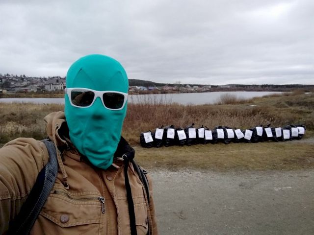 Автор проекта Чистомэн устроил уборку на берегу реки Миасс. За 3 часа работы он собрал 17 мешков мусора, после чего построил из них стену оправданий. Герой разместил на каждом из мешков по популярному оправданию, которые используют люди, оставляющее отходы в непредназначенных для этого местах.