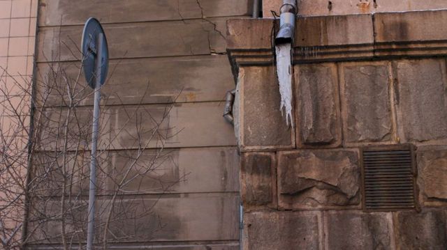 Возле дома на Красной, 40 корреспондента ЕАН засыпало ледяной крошкой из-за разбившейся об асфальт ледышки, которая слетела с отвода дождевой воды.
