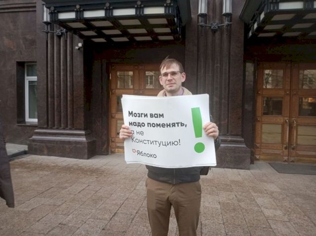 Сегодня, 12 марта, утром члены партии «Яблоко» вышли на одиночные пикеты к зданию Законодательного собрания Челябинской области. Они выступают против поправок в Конституцию.