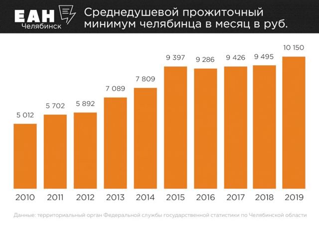 По данным службы государственной статистики в Челябинской области, в 2019 году среднедушевой доход населения в месяц вырос с 25 178,1 рубля до 25 414,2 рубля.