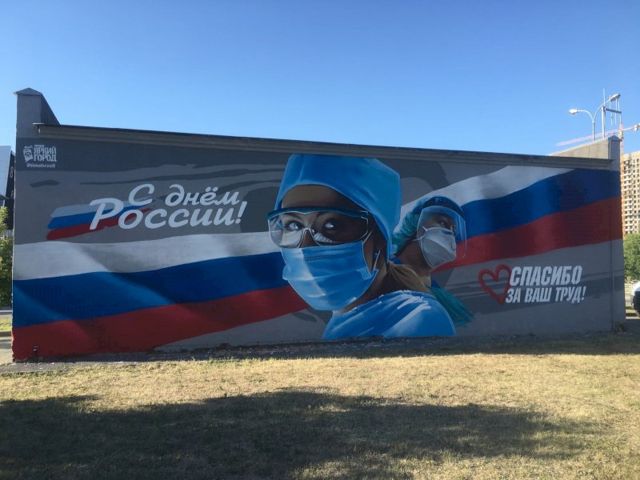 «Работникам сферы здравоохранения посвящается! Новое граффити в честь наступающего Дня России! Ура!» - написал на своей странице Тимур Абдулаев.