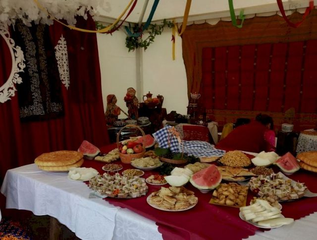 В центре площадки стоял трехметровый деревянный конь. Не то троянский, не то троицкий. «Ты как насчет 100 граммов?», — высокий, но крепкий дед-казах был безапелляционен, и завел корреспондента ЕАН в шатер Агаповского, кажется, района. На наскоро сформированном дастархане не было свободного места от явств.