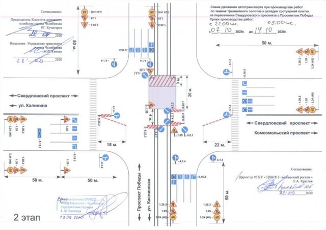 Из-за этого автобусы № 12, 18, 25с, 34, 39, 45, 49, 91 изменят маршрут следования: при движении в сторону Теплотехнического института будут двигаться по Свердловскому проспекту, через улицы Островского и Каслинскую, затем по проспекту Победы. При движении в сторону Комсомольского проспекта — без изменений.