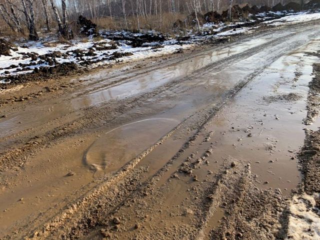 Дорога, ведущая к снегосвалке действительно покрыта тонким слоем грязи. Однако для грузовиков это не страшно: главное, что покрытие не проваливается и не образует колеи.