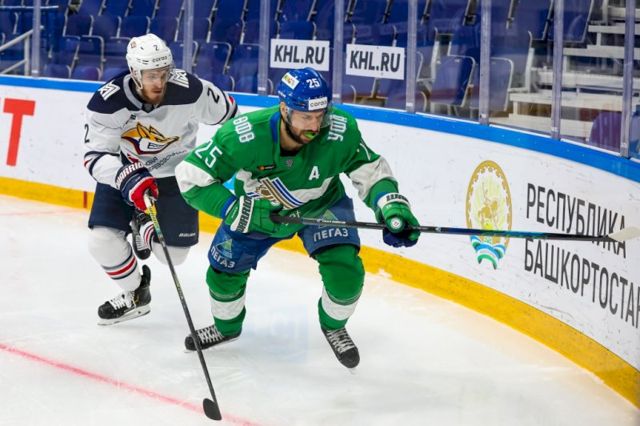 В самом начале второго периода Семен Кошелев угодил в перекладину ворот хозяев. Вскоре уфимцы воспользовались большинством и сравняли счет, причем гол получился довольно курьезным. Шайба после броска Ларсена от синей линии попала в спину Хартикайнену и отскочила прямо в ворота Василия Кошечкина.