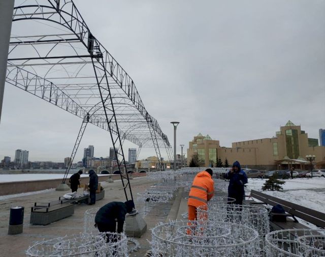 В Челябинске на набережной за Государственным историческим музеем Южного Урала монтируют световой тоннель. Запустить его обещают 26 декабря, сообщили в Комитете дорожного хозяйства.