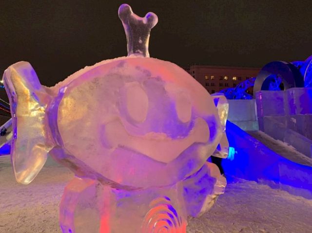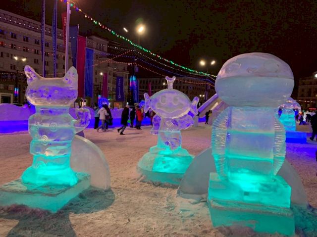 В Челябинске сегодня открыт ледовый городок на площади Революции. Его тематика – космос. Построены горки, скульптуры, есть карусели. На открытие пришла глава города Наталья Котова.