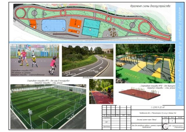 Проектом предусмотрены четыре функциональные зоны: для массовых мероприятий, активного отдыха с детьми, занятий спортом и прогулок.