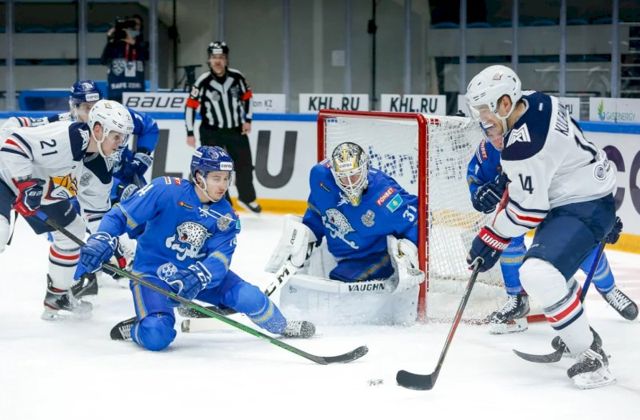 В начале второго периода «Магнитка» вновь вышла вперед, причем гол вышел довольно курьезным. Шайба после броска Николая Голдобина летела явно мимо ворот, однако непостижимым образом она поменяла направление полета и юркнула в ближний угол. Впрочем, «Барыс» отыгрался довольно быстро, и тоже не обошлось без доли везения: Юхо Олкинуора пустил шайбу под щитком после не самого сложного броска Блэкера.