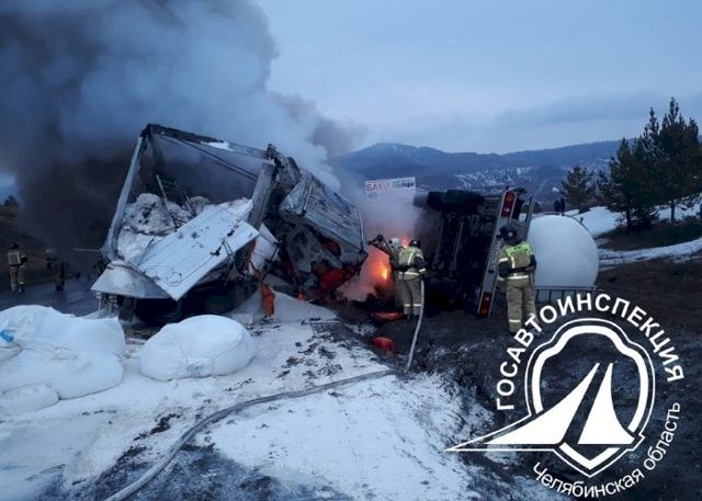 «По предварительной информации, водитель, управляя грузовым автомобилем Скания с полуприцепом, при неустановленных обстоятельствах выехал на полосу встречного движения, где совершил столкновение со встречным автомобилем «Скания» с автоцистерной под управлением водителя 1983 г.р.», – сообщили в пресс-службе ГИБДД Челябинской области.