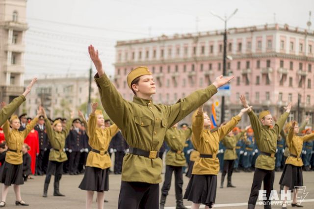 «По традиции по площади Революции прошли участники построения, а также реконструированная рота бойцов в форме и с оружием времен Великой Отечественной войны. Также в параде была задействована военная техника 40-х годов, послевоенного периода и авиация», – сообщает пресс-служба администрации Челябинска.