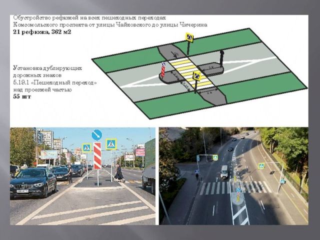 «Доведение до нормативов (ширины полос – прим. ЕАН) состоится без сокращения их количества (полос – прим. ЕАН). Средняя ширина полосы на Комсомольском проспекте составляет 3,8 м, а иногда ширина доходит до 4-х м. Выделенная полоса будет шириной 3,75, а остальные – 3,25 м по ГОСТу. За счет сужения уменьшится боковой интервал, благодаря этому стабилизируется скорость потока. Подчеркнем, что количество полос не сократится. Островки безопасности создаются не за счет уменьшения полос, а за счет их сужения. Островки будут предотвращать умышленное или неумышленное нарушение правил дорожного движения. Габариты островка будут заставлять водителей интуитивно притормаживать перед пешеходным переходом, что предотвратит количество ДТП. Водители будут знать о сужении благодаря разметке», - пояснил то, зачем это делается, вице-мэр по городскому хозяйству Максим Кулешов.