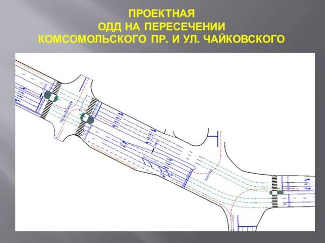 Сделают. Но. Обустроить разделительную полосу с газоном на всем Комсомольском проспекте не представляется возможным – под дорогой проложены различные коммуникации (провода, водоводы, канализация и пр). В итоге проектировщики решили, что зеленая полоса будет делить проспект на двух участках: от улицы Ворошилова до Солнечной и от Каслинской до Свердловского проспекта.