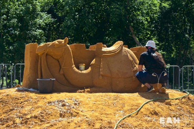Как уточнили скульпторы, фигуры состоят не только из песка – внутри деревянный каркас. А после завершения возведения их покроют клеем – чтобы не развалились из-за дождя и ветра.