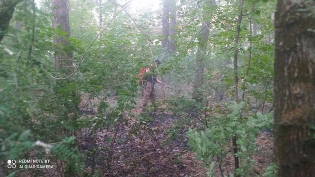 Горит «лесная подстилка», без открытого огня. Сейчас «подстилка» оперативно проливается пожарной техникой. Ситуация находится под контролем, удалось локализовать возгорание», — написал замминистра.