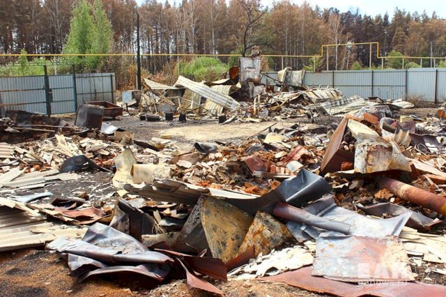 Поселок Запасное – место живописное. До пожара дома купались в зелени, окруженные лесным массивом. Сегодня на улицах работают сотрудники технических служб, которые налаживают работу линий связи, проверяют прочие коммуникации. Дальше картина становится все страшнее. Огонь полностью уничтожил несколько домов. Кое-где на пепелище практически нечего разбирать: постройки выгорели полностью.