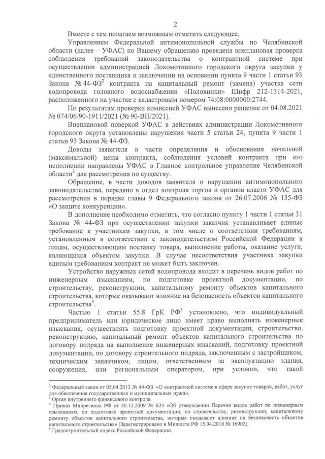 В июне 2021 года на водоводе Локомотивного городского округа произошло 8 порывов. Горожане сутками оставались без воды. Губернатор Челябинской области Алексей Текслер заявил о полной замене 5,2 км водовода за 61 млн рублей. Из-за порывов ввели режим повышенной готовности из-за возможной ЧС, а губернатор пообещал отставки. Контракт на ремонт водовода заключили без торгов, да еще и с предпринимателем и депутатом от «Единой России» Иваном Злыгостевым, который уже чинил его.