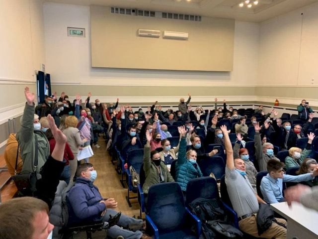 Лидер движения «СтопГОК» Василий Московец предложил пришедшим проголосовать прямо в зале, а не через «листочки», на которые собирали подписи или почтовый ящик.
