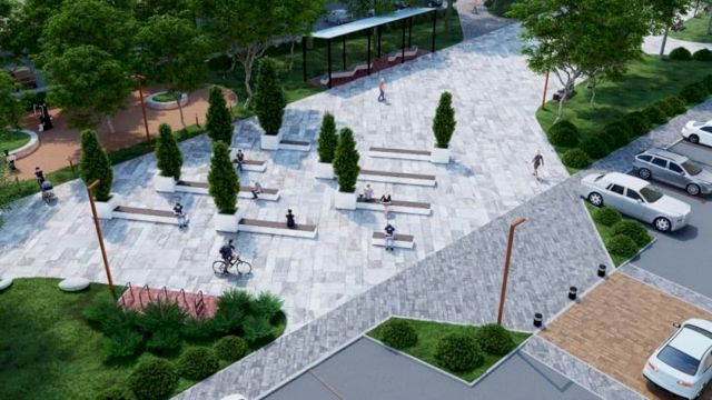 Тротуары, велодорожки, качели, скамейки, зоны для детей и площадка для выгула собак, зона для мероприятий; 302 крупномерных дерева (высотой 6-8 метров): яблони, березы, ели, липы, ивы, туи. И все это с большим количеством света.