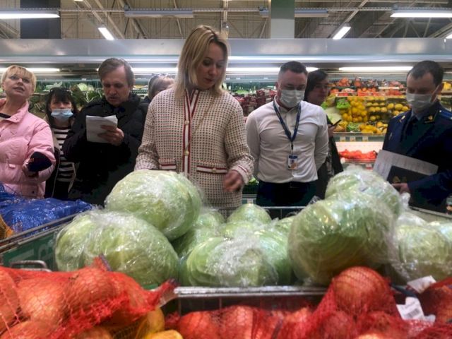 Третья точка, куда направились ревизоры, – гипермаркет «Лента». Дефицитов товаров первой необходимости рабочая группа не обнаружила. Стоимость муки за 2 кг – 89 рублей, капусты белокочанной – 139 рублей за кг, макарон – 209 рублей за упаковку 3 кг.