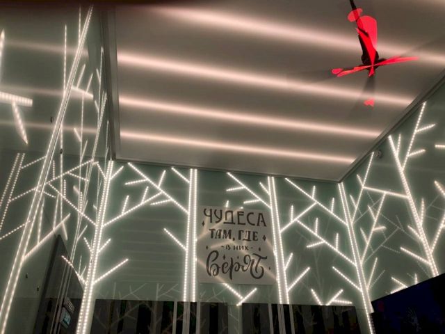 «В трех вариантах только эскизы для фойе были сделаны, они заняла большую часть. В процессе разработки очень многое перерисовывалось, откидывалось, дорисовывалось. В итоге мы выбрали третий вариант, который и представлен. Концепция у нас одна: «Чудеса там, где в них верят»., - рассказала автор проекта Елена Крутских.