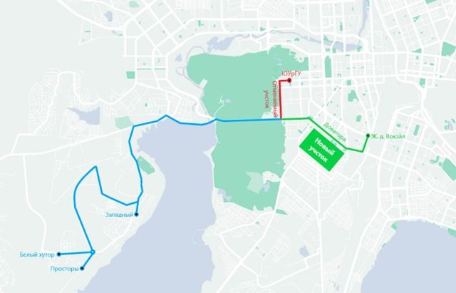 «136 от Белого хутора по улицам: Лазурная, Просторная, Изумрудная, автодорога Шершни — Западный, Лыжных Батальонов, Гостевая, Северная, Братьев Кашириных, Кирова, Труда, Цвиллинга, проспект Ленина, Свободы до Железнодорожного вокзала», – сообщает Министерство дорожного транспорта и хозяйства Челябинской области.