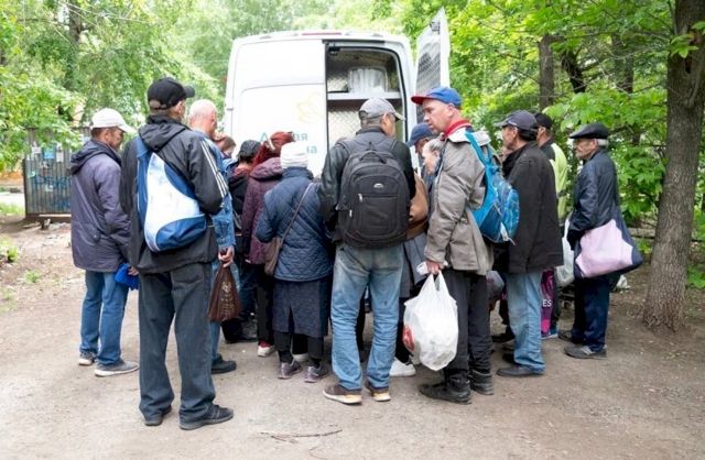 Сами бездомные к доктору Жене относятся очень уважительно. На выездах терпеливо выстраиваются в очередь, чтобы получить первую помощь, рассказать о своих болячках, взять необходимые медикаменты.