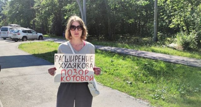 Депутат Центрального райсовета Челябинска Ирина Гладышева вышла на одиночный пикет против расширения дороги по улице Худякова в городском бору. Пока полиция устанавливала личность пикетчицы, за нее вступились проезжающие мимо велосипедисты.