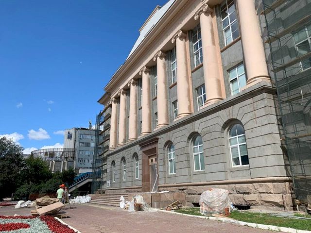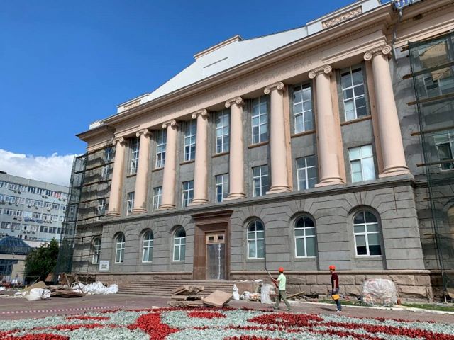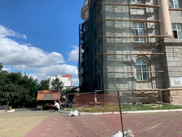 «Подрядчик ни на день не выбился из графика, все идет даже с небольшим запасом времени. Фасад будет немного раньше отремонтирован – 15 октября. Сейчас выполнен проект, идут работы по закладке маршрута подсветки, чтобы потом не долбить по готовому», – прокомментировал Алексей Бетехтин.