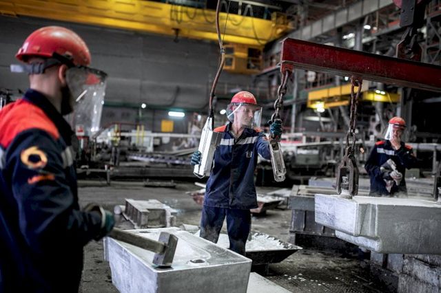 Процесс удаления закладных элементов из цинкалюминиевых блоков состоит из нескольких этапов. Специальные элементы в форме конуса на начальном этапе закладывают в изложницы, в которые позже разливают сплав. Затем блок достают из изложницы при помощи крана. После этого конусы удаляют, чтобы вновь пустить в технологический процесс. Ранее закладные элементы выбивали вручную, кувалдой. За смену в процессе отливки цех производит несколько десятков однотонных и двухтонных блоков, и из каждого такого блока необходимо выбить по два закладных элемента.