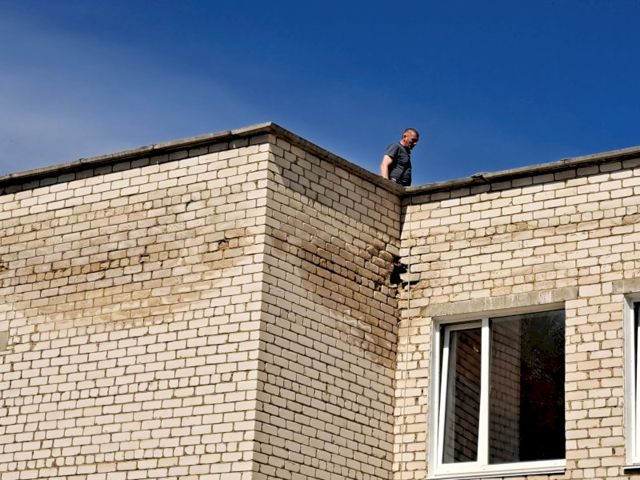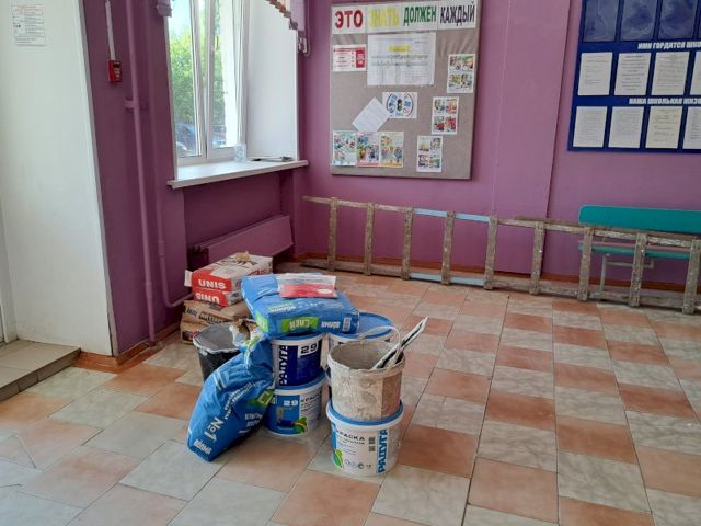 Вместе с общественниками журналист ЕАН побывал на месте. В школу завезены строительные материалы, на крыше накануне днем трудились рабочие.