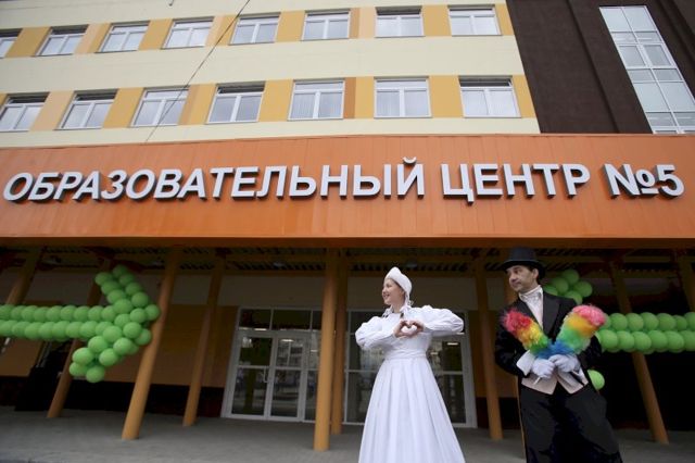 Фото: губернатор Алексей Текслер и директор школы на ее открытии в 2020 году. Судя по фото, тогда на охране работала иная организация