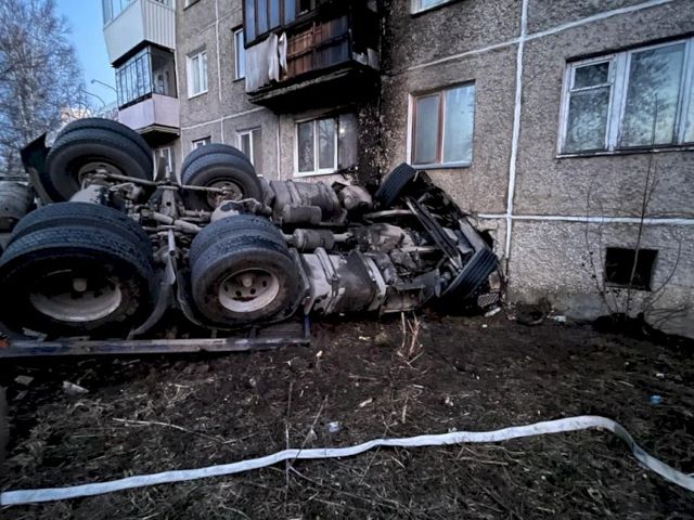 В Златоусте Челябинской области сегодня ночью произошла смертельная авария. ДТП случилось на ул. 40 лет Победы. Грузовик врезался в жилой дом и перевернулся.