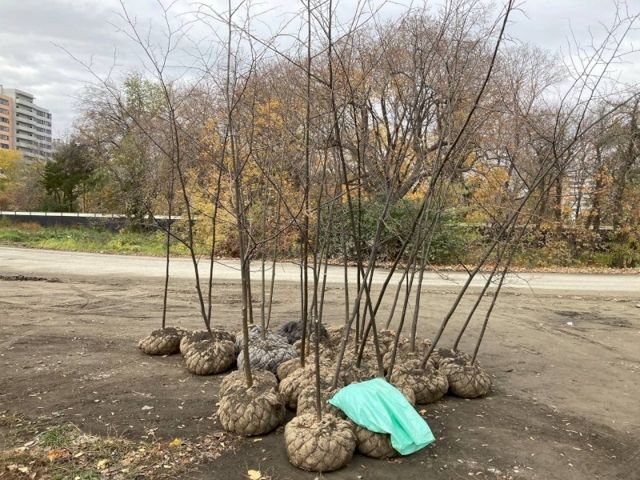 «В рамках повторного контроля мы установили, что работы по замене деревьев начаты. К сожалению, омрачает тот факт, что посадочный материал, как и подготовка, по-прежнему не соответствуют ГОСТ. Деревья повреждены, не устранены надлежащим образом, более того, саженцы лежат на земле более недели. Это при ночных заморозках негативно отразится на их приживаемости», — рассказали экоактивисты.