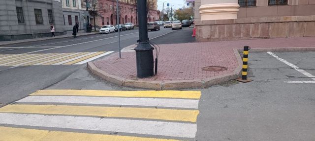 Челябинцы обратили внимание на "зебру" на Театральной площади, в нескольких десятках метров от администрации города. В сообществе «Изнанка Челябинска» опубликовали фото, на котором видно, что полосатая дорожка для пешеходов упирается в столб.