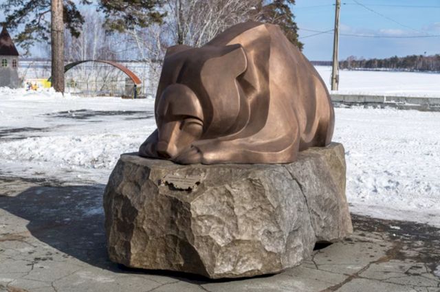 В Снежинске (Челябинская область) городской парк культуры и отдыха украсил новый арт-объект. Там поставили бронзовую скульптуру «Спящий медведь».