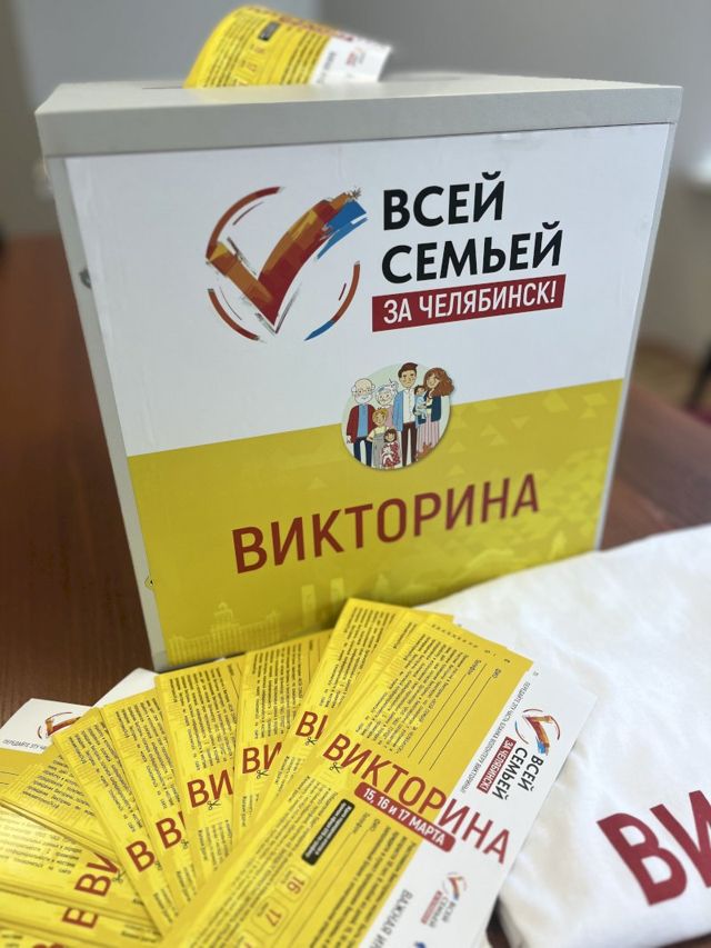 Викторина «Всей семьей – за Челябинск» проходит на избирательных участках в течение всех трех дней голосования. Призовой фонд состоит из трех квартир, десяти машин и большого количества других подарков, среди которых бытовая техника и электроника. Победителей определяют в эфире телеканала ОТВ.