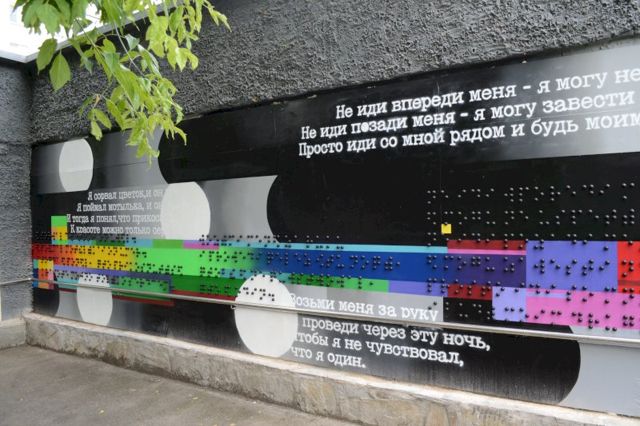 В Челябинске открыли арт-объект для незрячих и слабовидящих. Граффити появилось на пересечении Свердловского проспекта и улицы Коммуны – это территория, где расположены библиотека, школа и реабилитационный центр для людей с плохим зрением. Картину со шрифтом Брайля целый год создавала художница Полина Сухова.